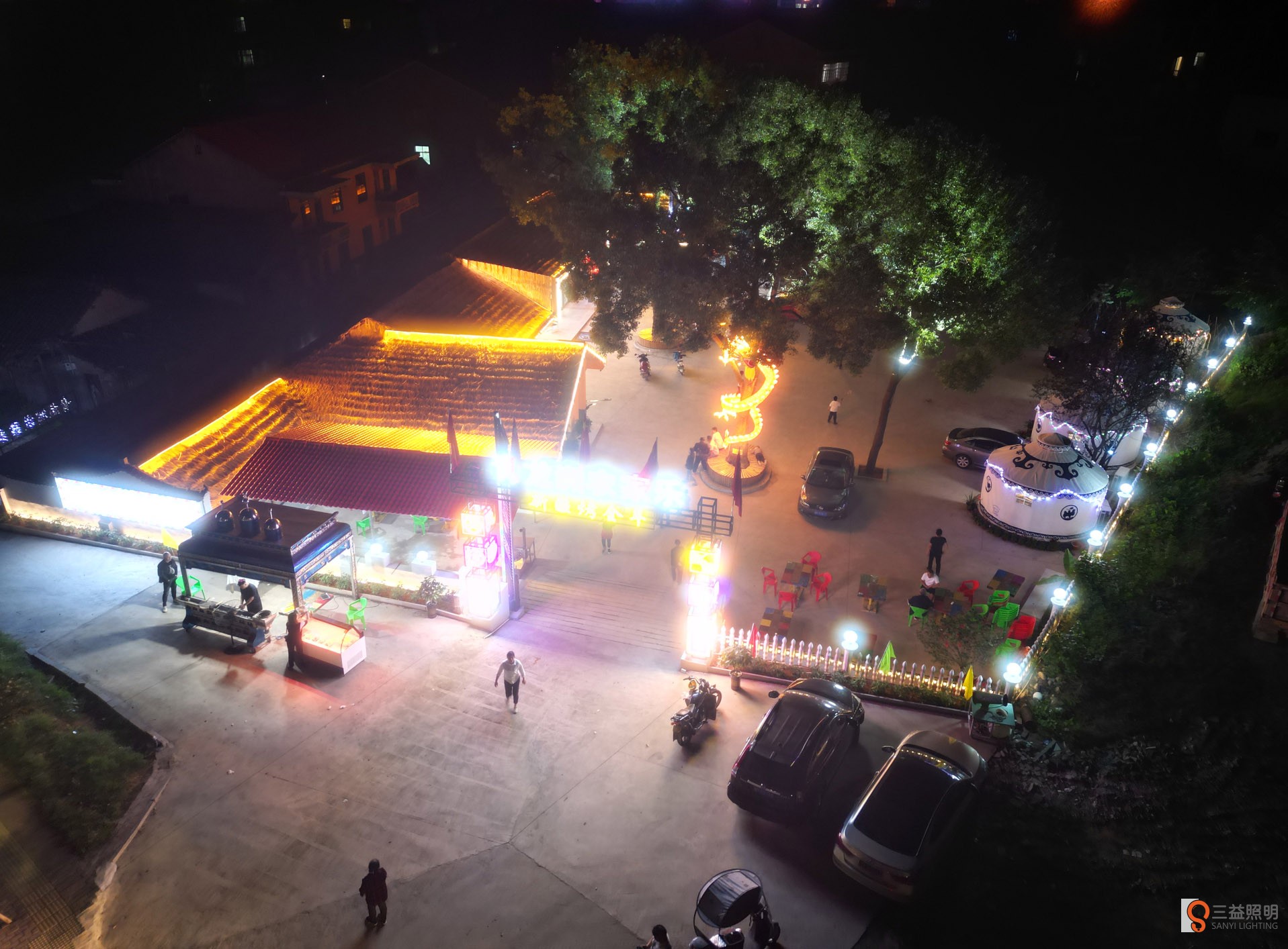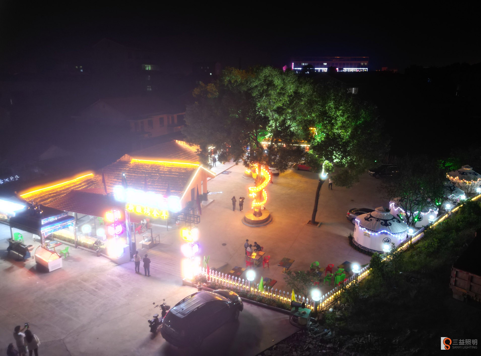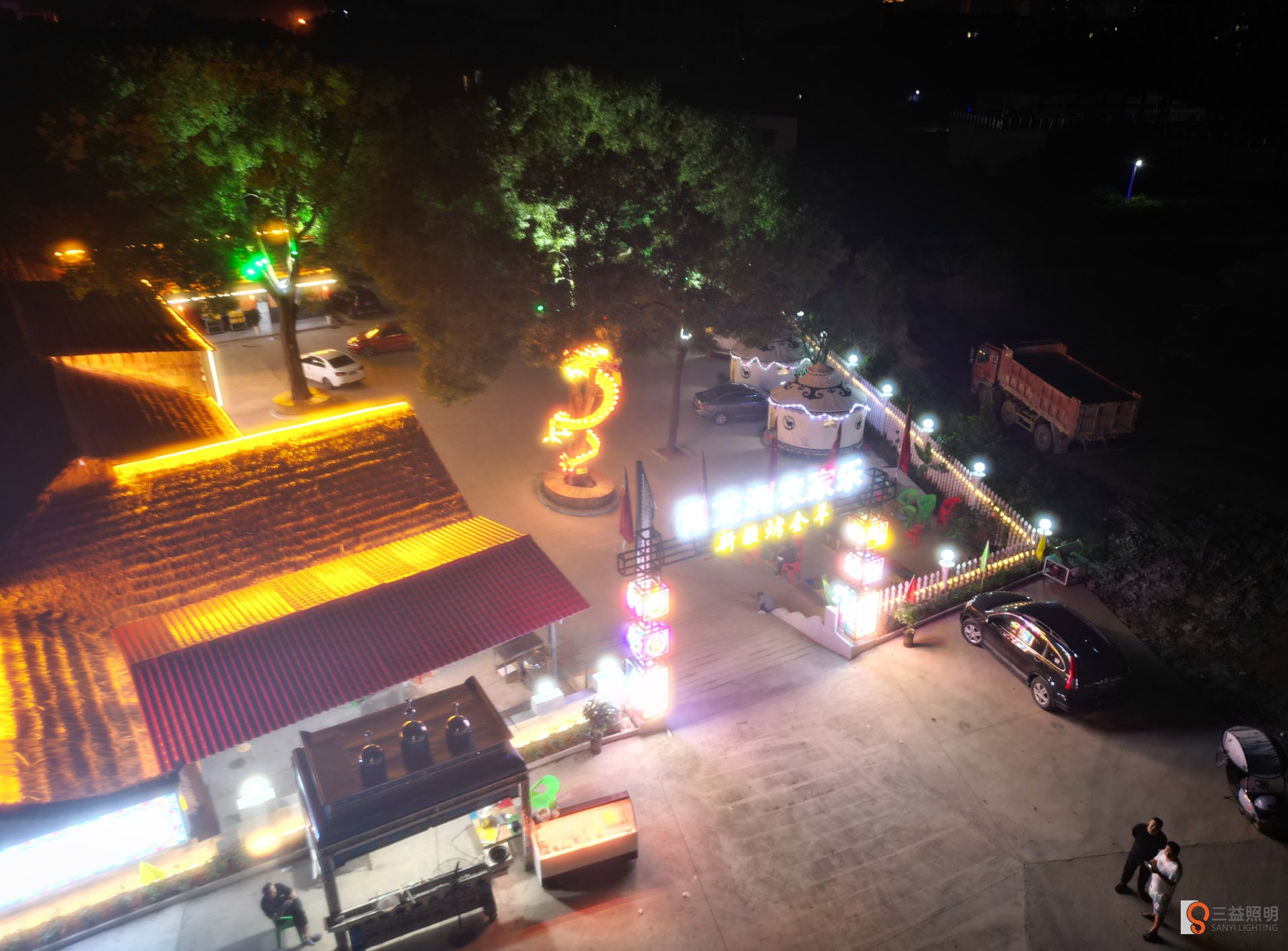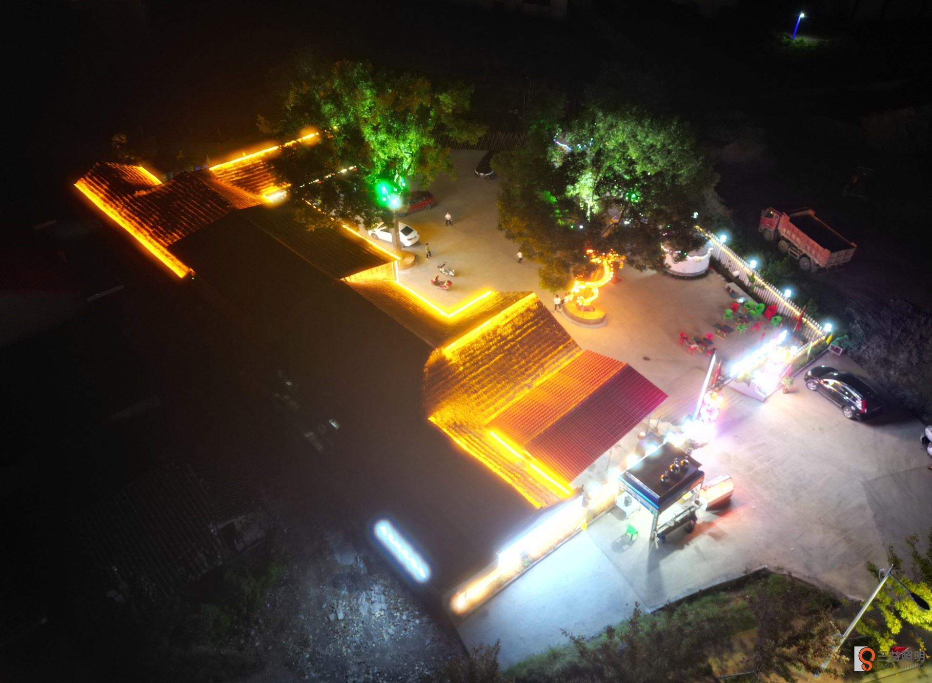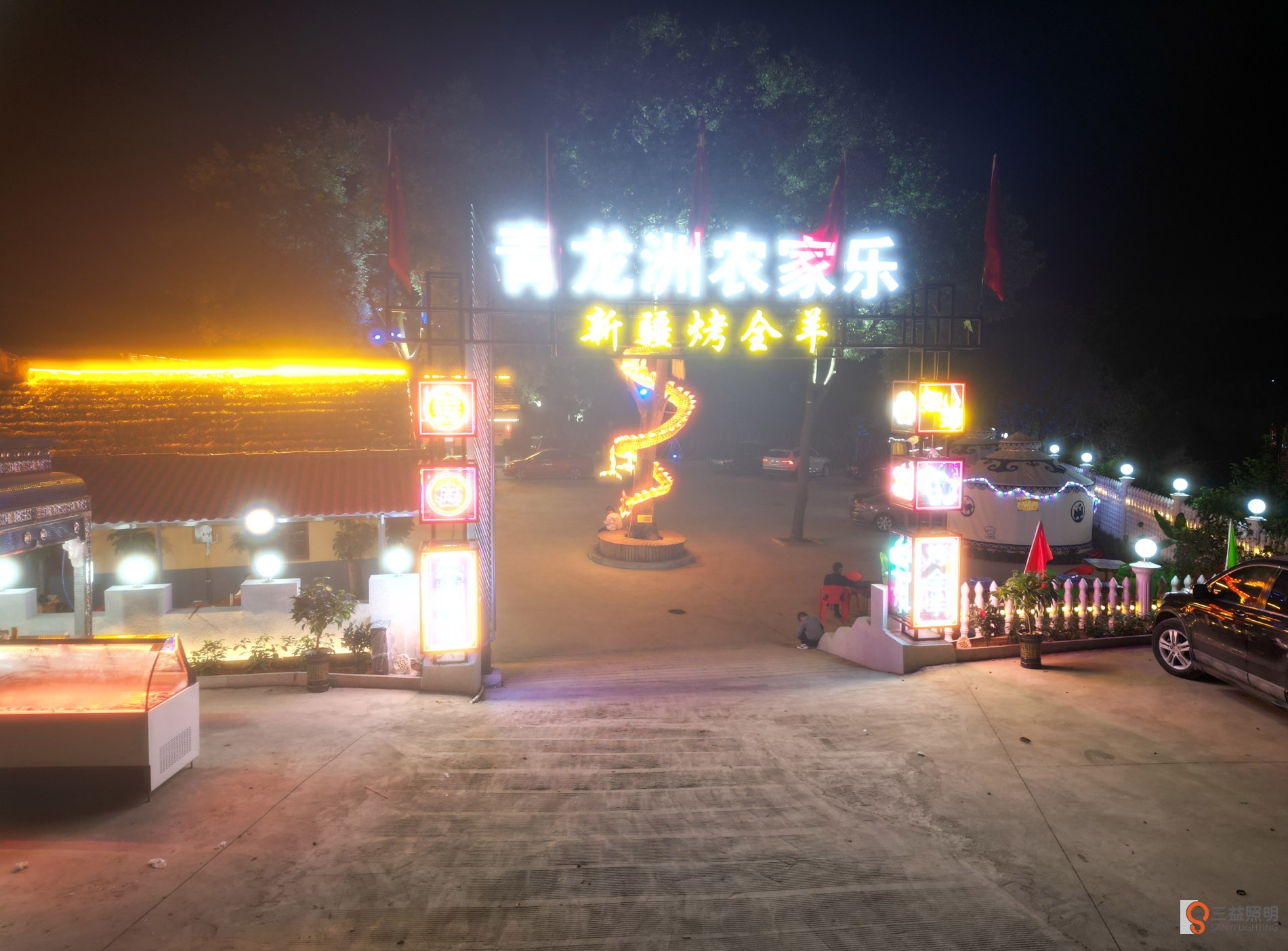 本工程采用網紅霓虹燈、燈箱、線條燈、洗墻燈、發(fā)光字、柱頭燈、燈帶、顯示屏、舞臺燈光、投燈燈等眾多燈光打造的網紅打卡農莊。
