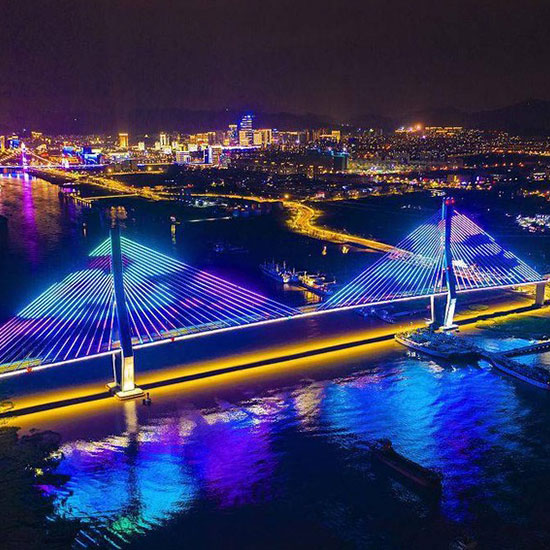 橋梁全彩LED燈光是通過安裝帶DMX512控制芯片的燈具,再通過電腦、控制器進(jìn)行編程,使燈光能按程序展現(xiàn)不同效果,常用效果有炫彩、跑馬、漸變、像素屏。應(yīng)用場(chǎng)景:橋梁亮化工···